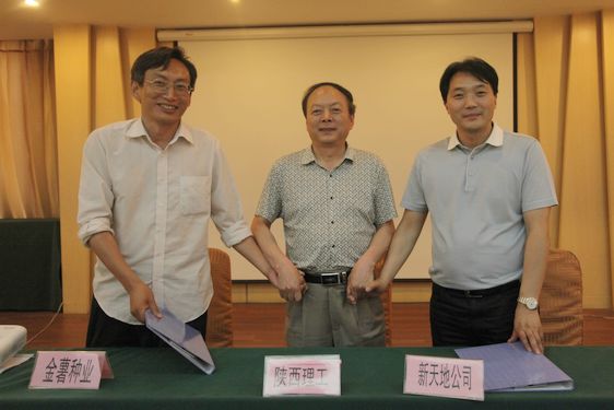 对与我校开展科研合作的前景给予了高度评价。我校科技处处长黄新民、汉中新天地公司总经理李晓涛、杨凌金薯种业科技有限公司总经理朱渭兵代表三方进行“年产500吨紫薯花青苷加工项目”合作协议的签订。